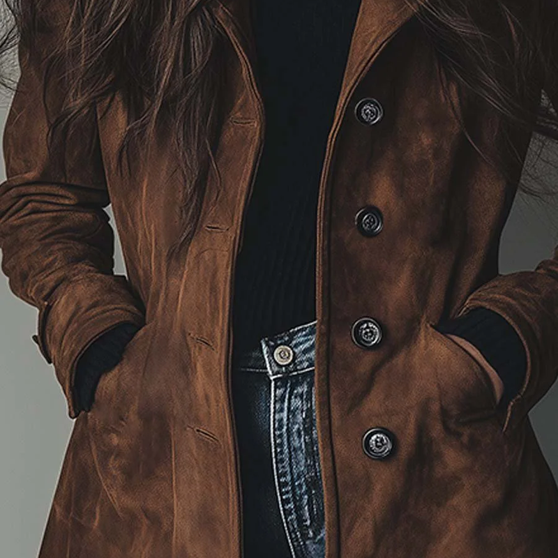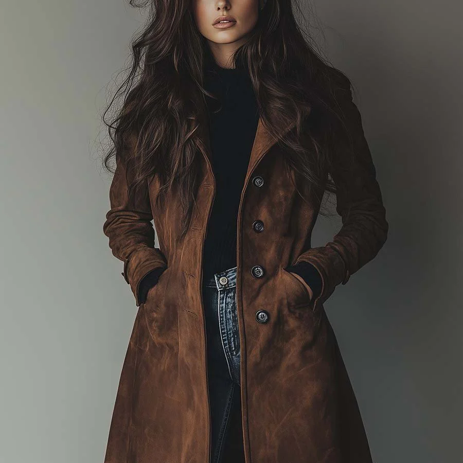 Trench en suédine douce à la coupe classique et féminine. Sa matière agréable apporte chaleur et élégance, tandis que la silhouette épurée s’adapte à toutes les tenues. Idéal à porter en superposition, il offre un style intemporel et raffiné au quotidien.